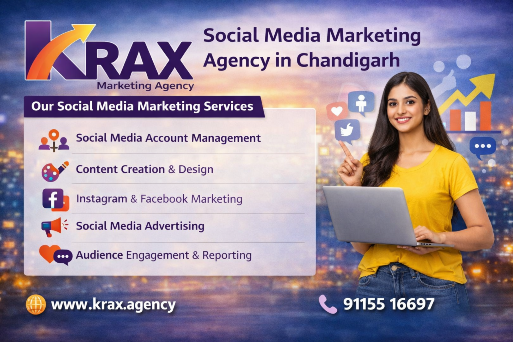Krax Agency is a professional social media marketing agency in Chandigarh that helps businesses grow their online presence through strategic social media campaigns.